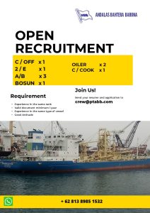 Kapal kami yang beroperasi lokal sedang membutuhkan kandidat – kandidat yang penuh semangat juga niat bekerja.